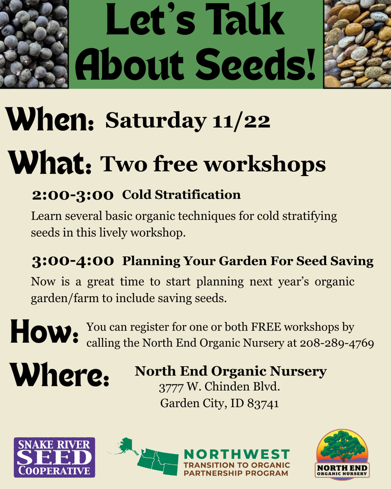 You can register for one or both FREE workshops by calling the North End Organic Nursery at 208-289-4769
